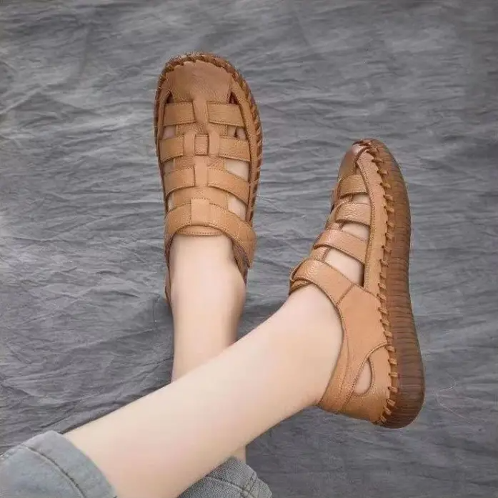 12分鐘前【35-41】女士復古真皮鏤空軟底凉鞋 - 一雙優惠價 NT$ 899